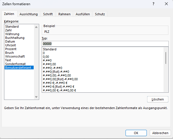 Am einfachsten und zuverlässigsten hat sich die 1. Methode: Benutzerdefiniertes Zahlenformat („00000“) erwiesen. Damit wird jede Postleitzahl automatisch fünfstellig dargestellt – auch dann, wenn sie mit einer führenden Null beginnt. Der Vorteil: Sie müssen weder komplizierte Umwege über Textfunktionen noch manuelle Nachbearbeitungen durchführen, und die Darstellung bleibt für alle Einträge konsistent und korrekt.